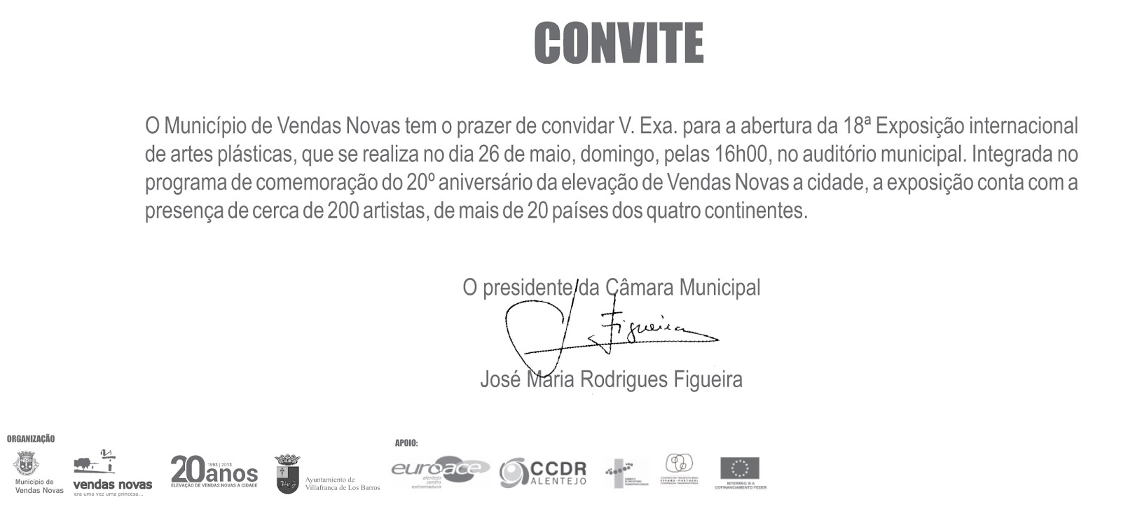 In the next May 04, 2013, by 21h30, the House of Culture of Trofa, in Portugal opens an international exhibition of art - FROM L’AGENZIA DI ARTE WITH LOVE - with the participation of the Plastic Artists: Brighart, Carla Taveira, Francisco Urbano, Isaura Figueiredo, Léa Dray, Maria Emilia Amaral, Massimo Bardi, Olessia Stroeva, Patty Silva, Renato Araújo, Santiago Ribeiro and Vifer. L'Agenzia di Arte is composed for more than 700 contemporary artists of various nationalities, in several artistic techniques such as painting, drawing, photography, sculpture, painting and digital video. In this exhibition will be presented works from Portugal, Italy, Brazil, Netherlands and Russia. FROM L’AGENZIA DI ARTE WITH LOVE will be open until 01/06/2013.